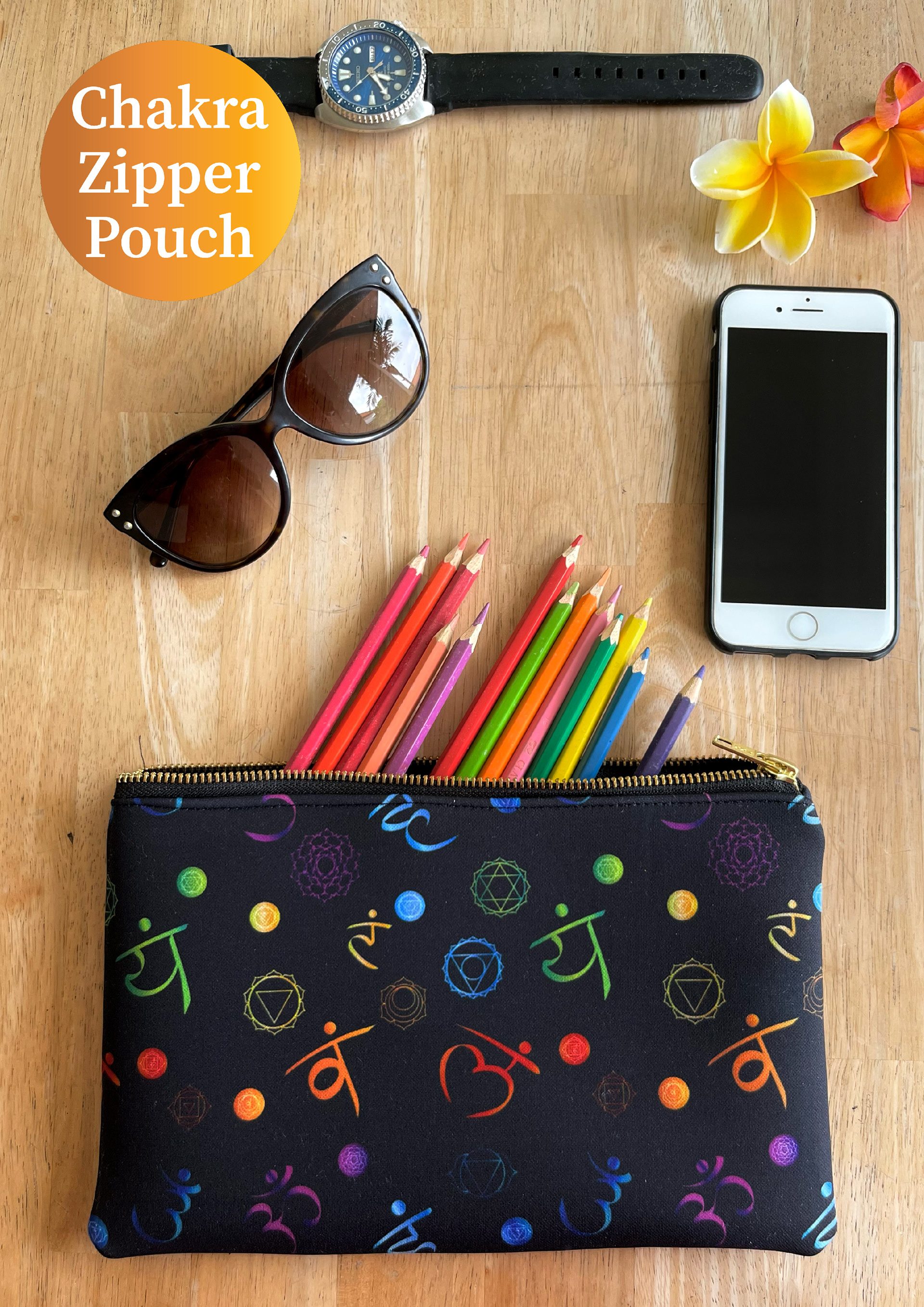 Our chakra zipper pouches made from water-resistant neoprene provide cushioning and protection to phones, sunglasses, or personal items at the beach or pool. High-quality zippers provide an extremely durable bag fit.